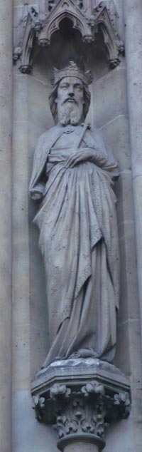 “Es lebe Christus, der die Franken liebt! Er beschütze ihr Reich, erfülle ihre Führer mit dem Lichte seiner Gnade, beschütze ihr Heer und verleihe dem Glauben Schutz. Er schenke ihnen Friede, Freude und glückliche Zeiten der Herr der Herrscher, Jesus Christus, in seiner Gnade. Sie sind das Volk, das tapfer und stark das harte Joch der Römer im Kampfe von seinem Nacken schüttelte und nach dem Empfang der Taufe die Leiber der heiligen Martyrer, welche die Römer mit Feuer verbrannten oder mit dem Schwert verstümmelten oder den wilden Tieren zum Zerfleischen vorwarfen, mit Gold und edlem Gestein schmückte“.