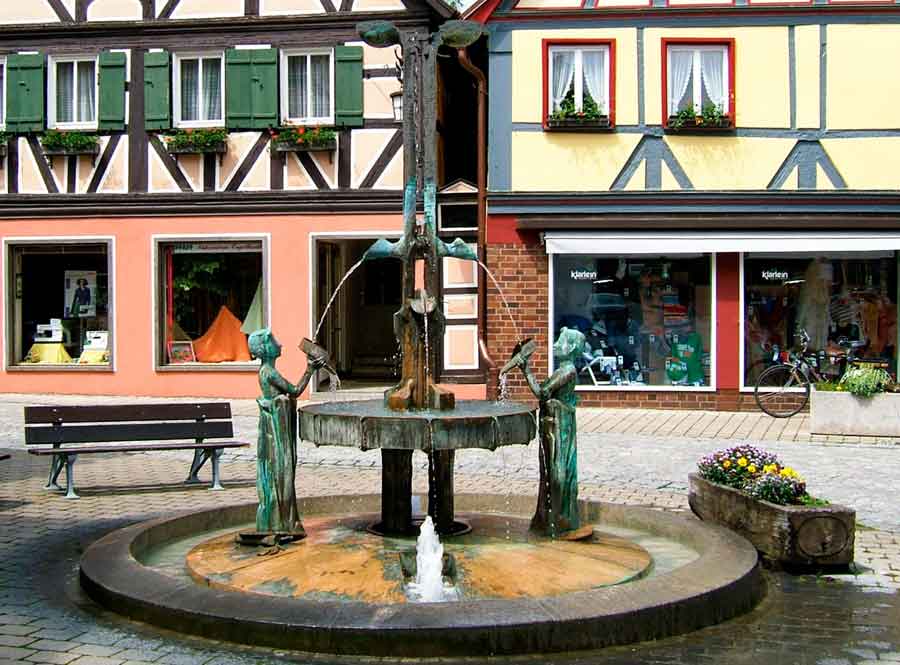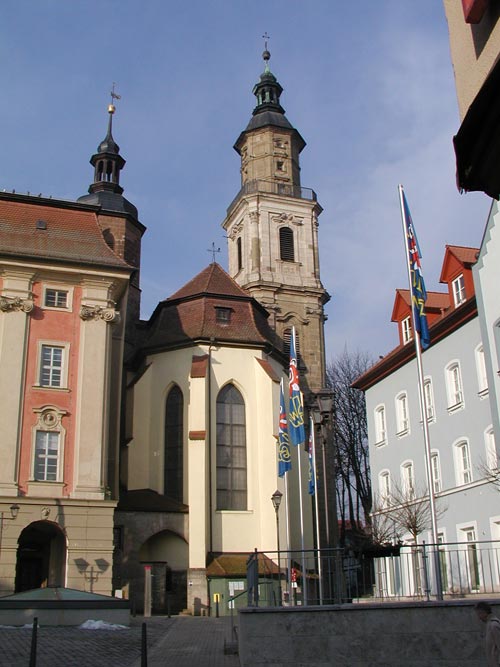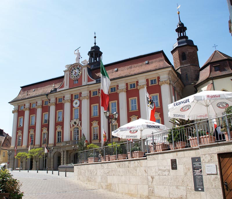 Mittelpunkt ist der Marktplatz mit seinem im barocken Stil erbauten Rathaus 1713 - 1717. Der Bau fiel am 3.Dezember 1730 einem Feuer zum Opfer wurde aber wieder aufgebaut. Durch das Rathaus - Portal erreicht man den Dr.Martin-Luther-Platz und den Eingang der Kilianskirche. Diese wurde ursprünglich romanisch, dann gotisch und nach dem Stadtbrand von 1730 im Barockstil bis 1733 wieder aufgebaut. Das Reichsstadtmuseum im Ochsenhof beherbergt eine Sammlung von Dokumenten und Gegenständen aus der Stadtgeschichte. Der Fachwerkbau stammt aus dem Jahre 1537. Das Augustinerkloster am Klosterplatz wurde 1291 gegründet und 1525 wieder aufgelöst. Der Schöne Brunnen wurde 1572 mit einem Standbild Kaiser Karls VI errichtet Die Seekapelle wurde von 1400 - 1402 erbaut, das bunte Ziegeldach des Turmes stammt aus den Jahr 1587. Die Spitalkirche6 wurde 1318 erbaut. Das anschließende Spital wurde 1315 gegründet.