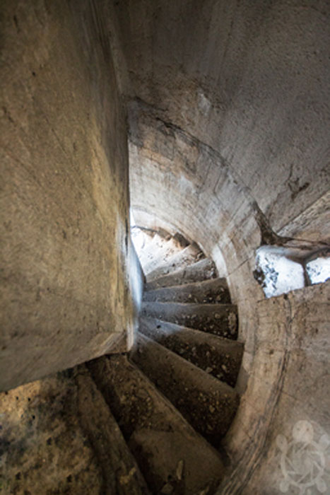 Der größere, untere Teil des Turmes bis zum Umgang hatte ausschließlich die Funktion als Treppenhaus. Die Betonierung ist in vier Abschnitten erfolgt.