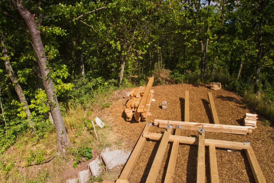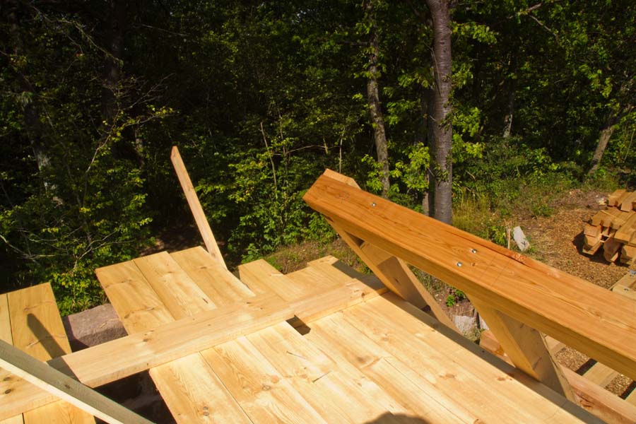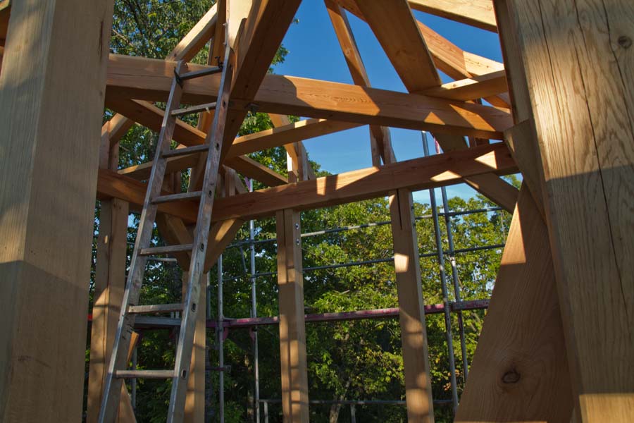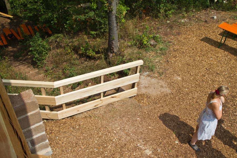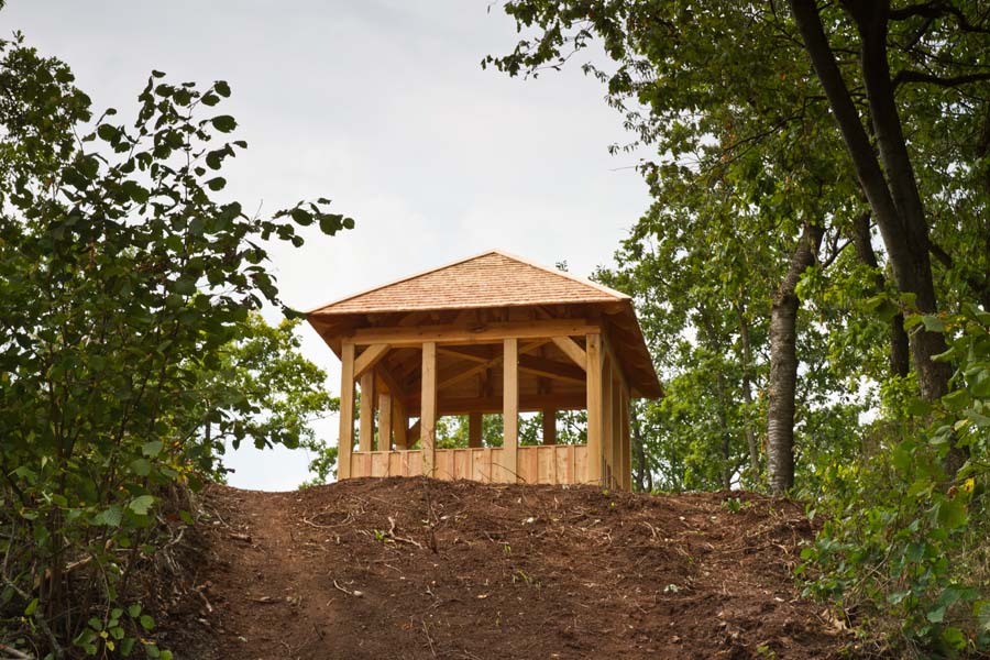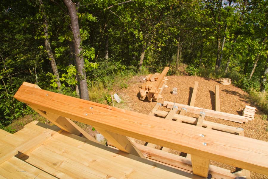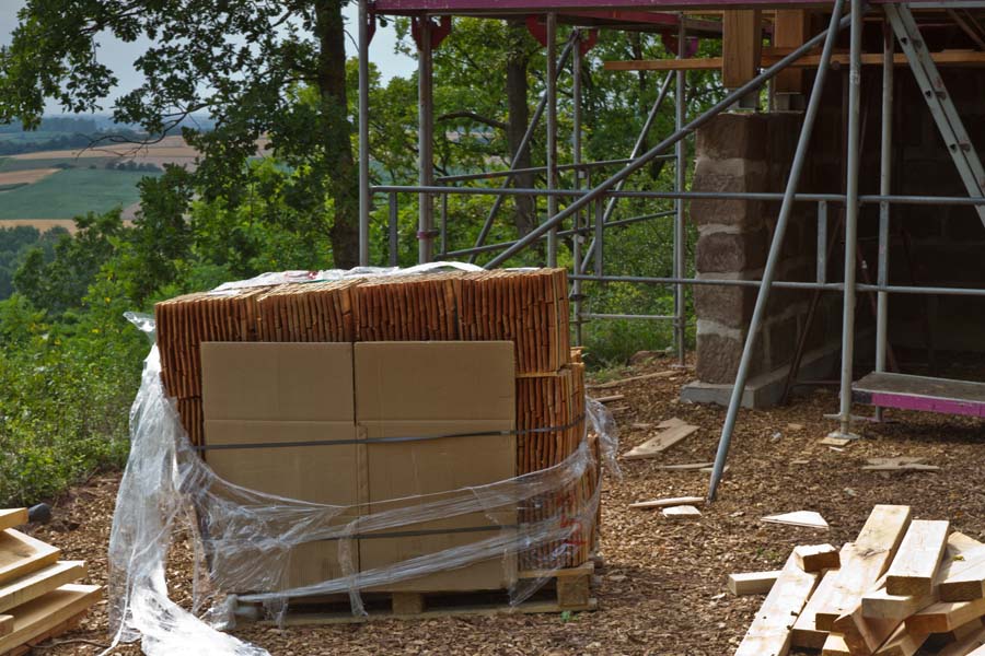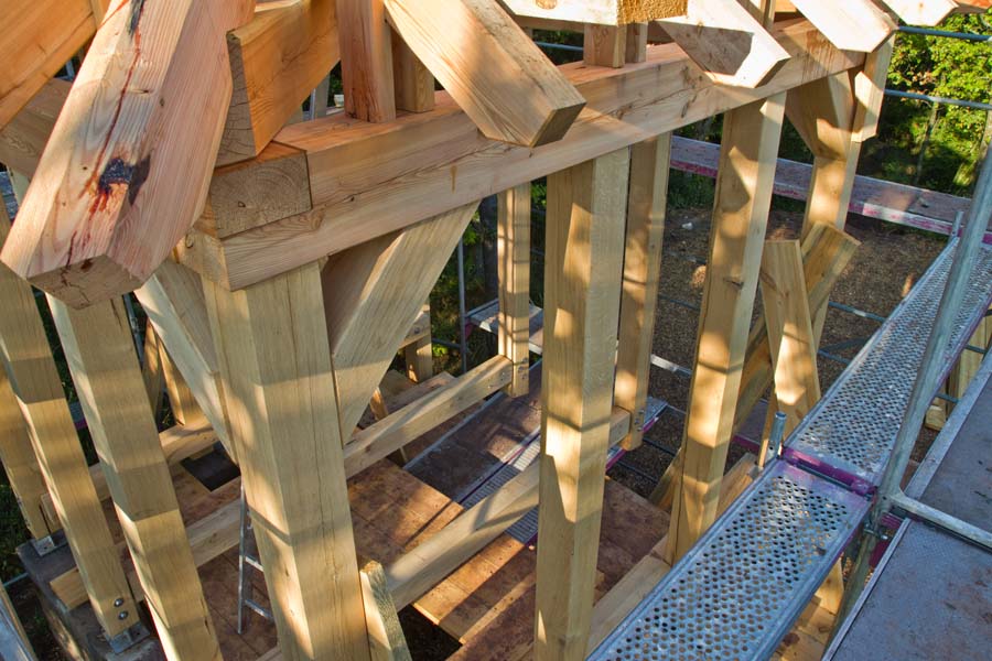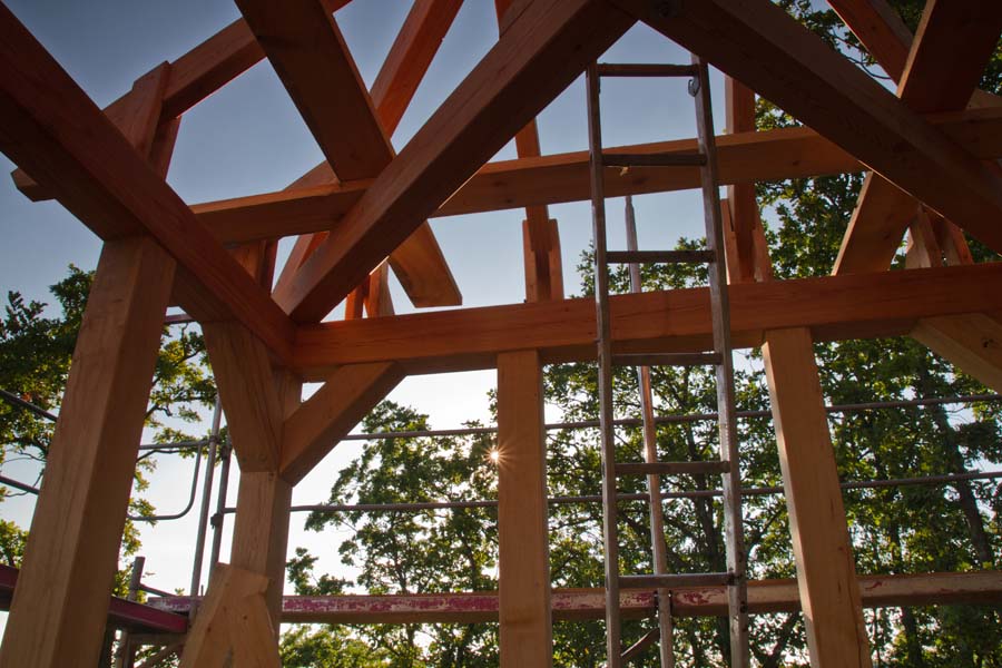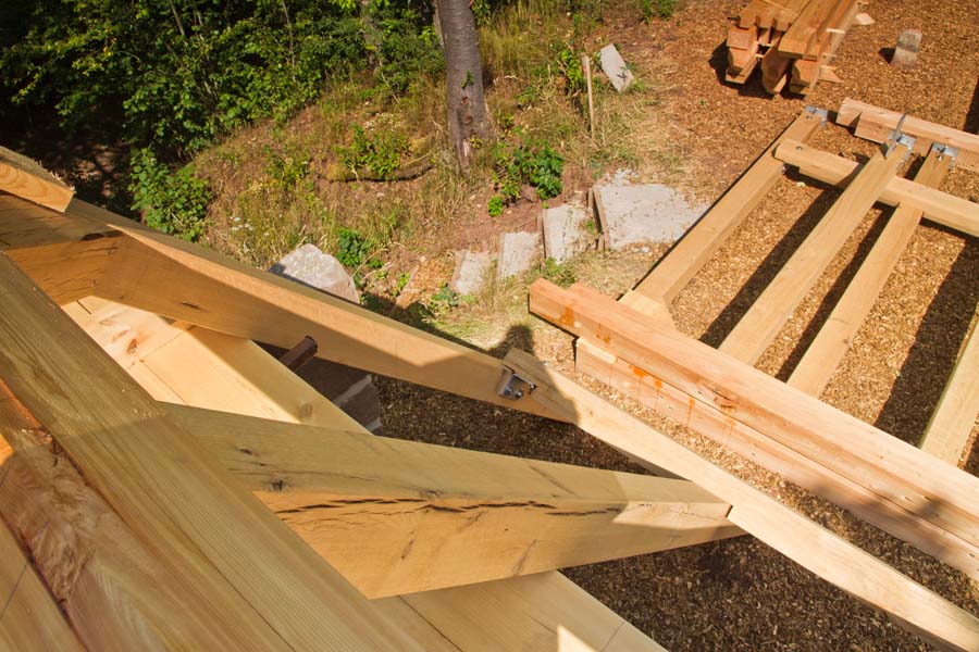 Hier ist die Aussichtsplattform schon eingezogen und auch schon Dachschindel sind angebracht