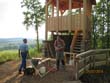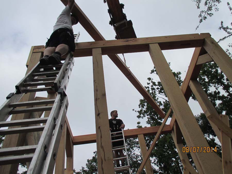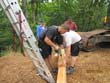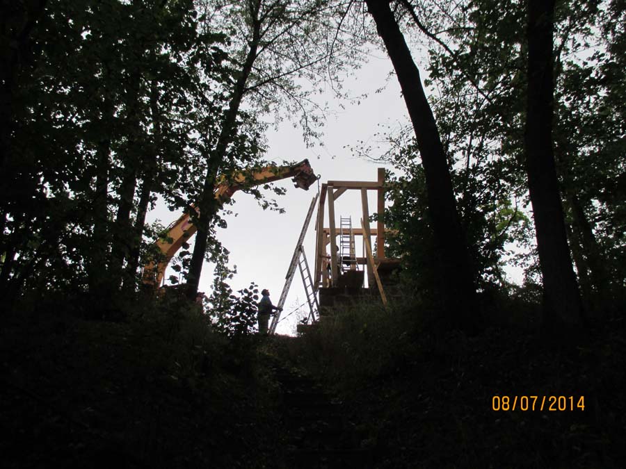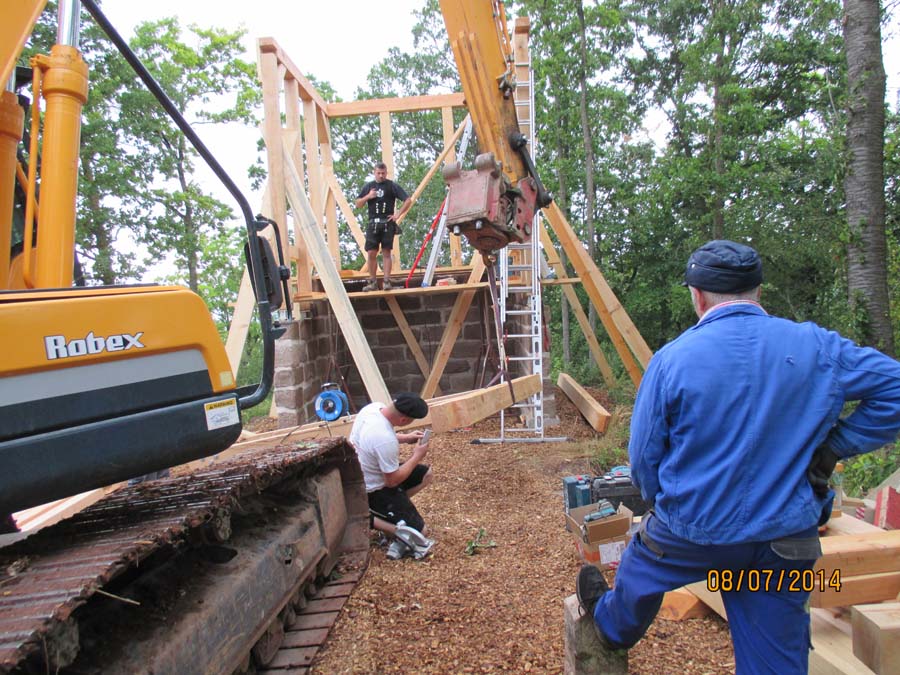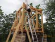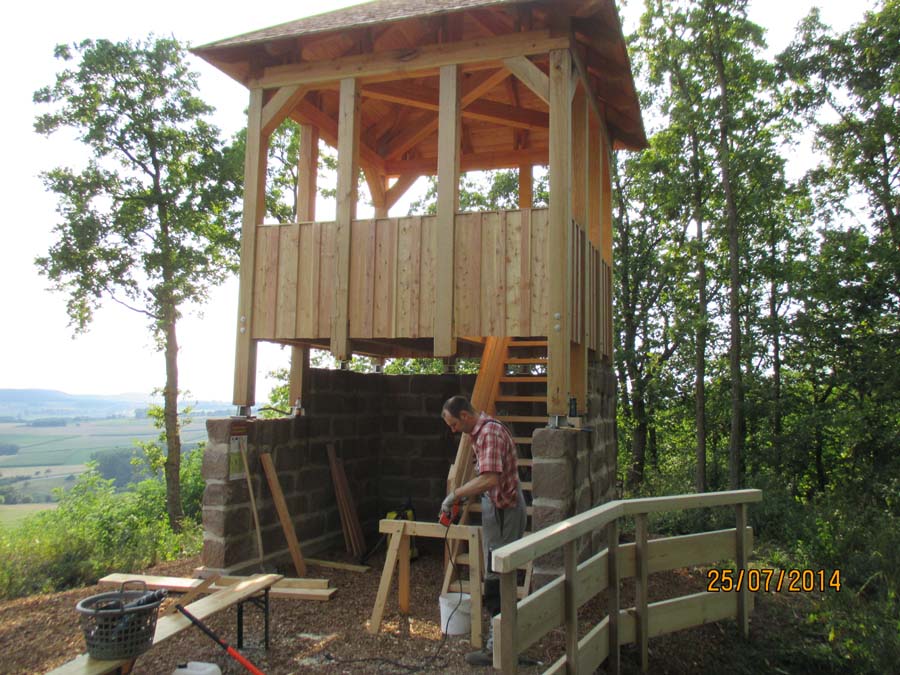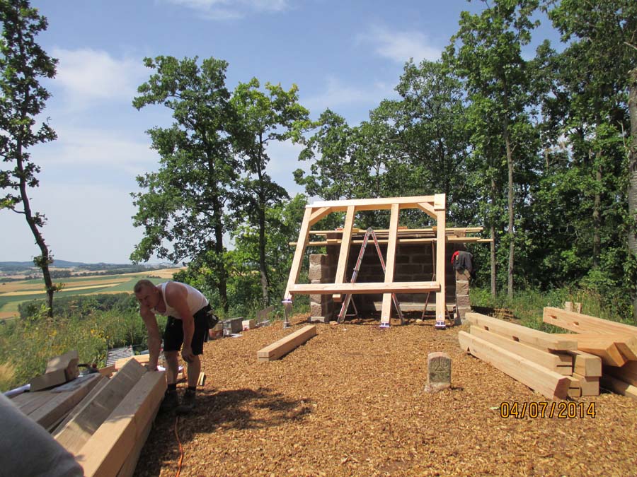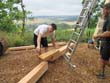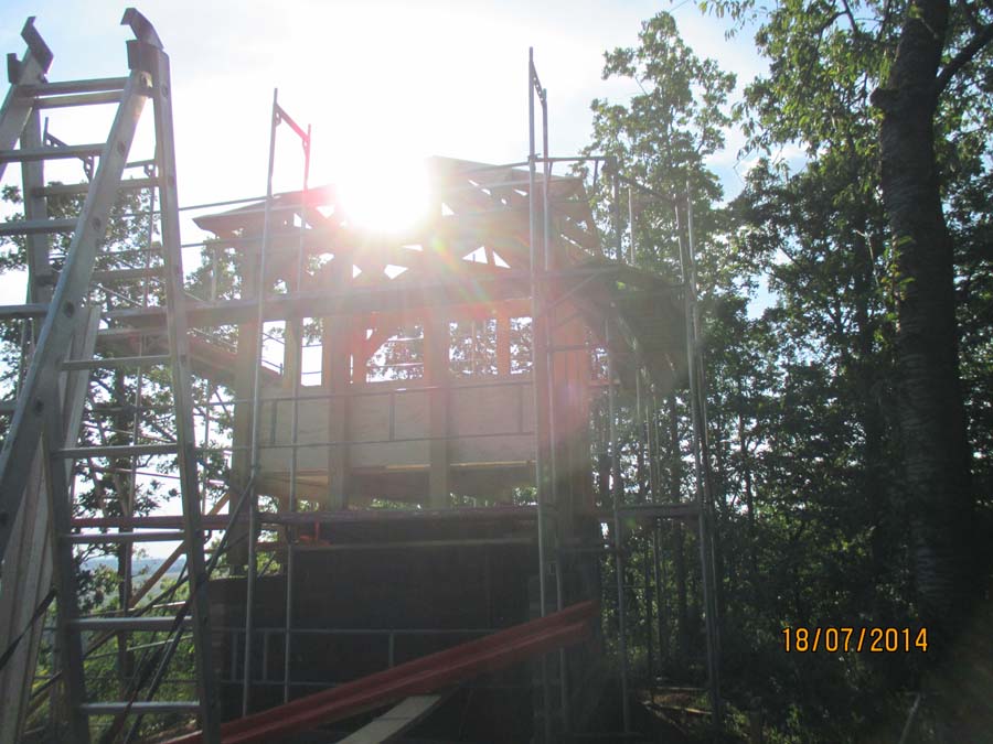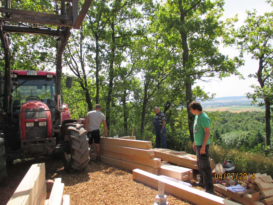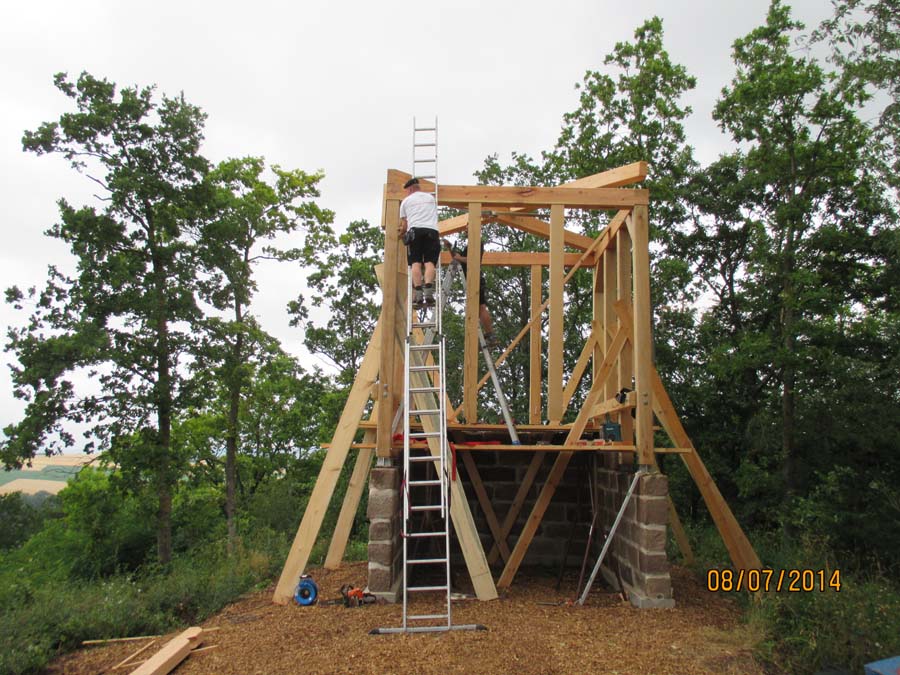 Das Heraufschaffen und Aufbauen des Holzgewerk für den Kunigundenturm