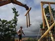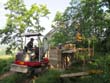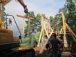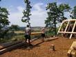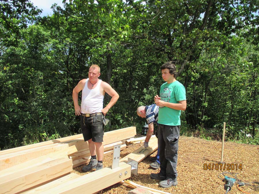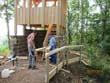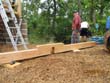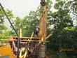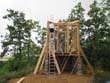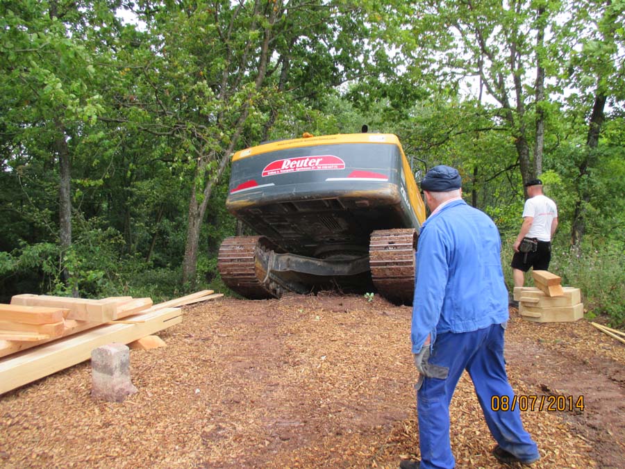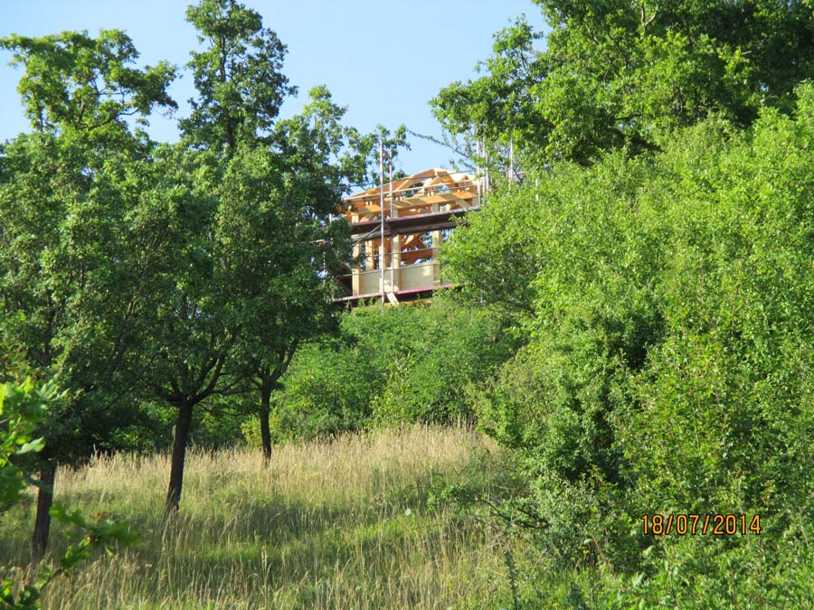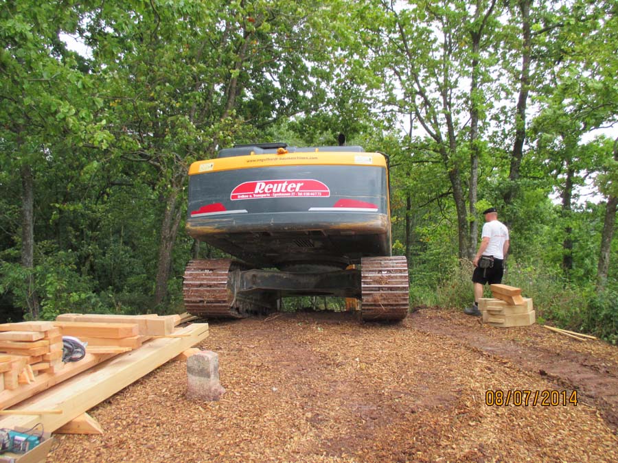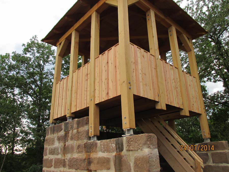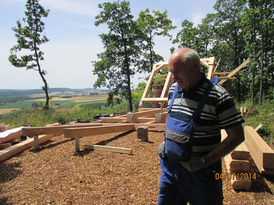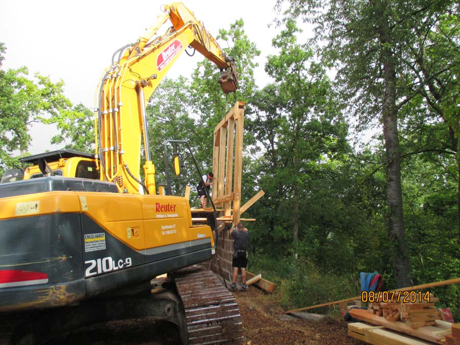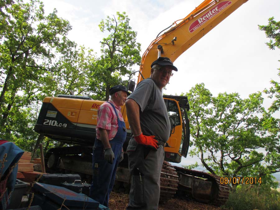 Das Heraufschaffen und Aufbauen des Holzgewerk für den Kunigundenturm