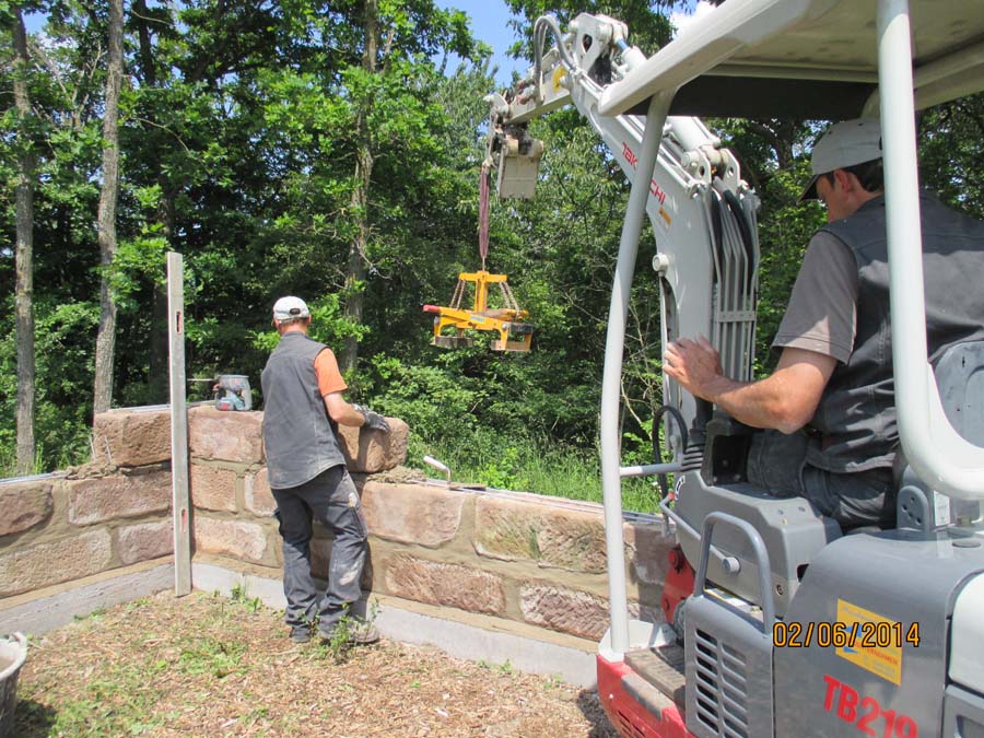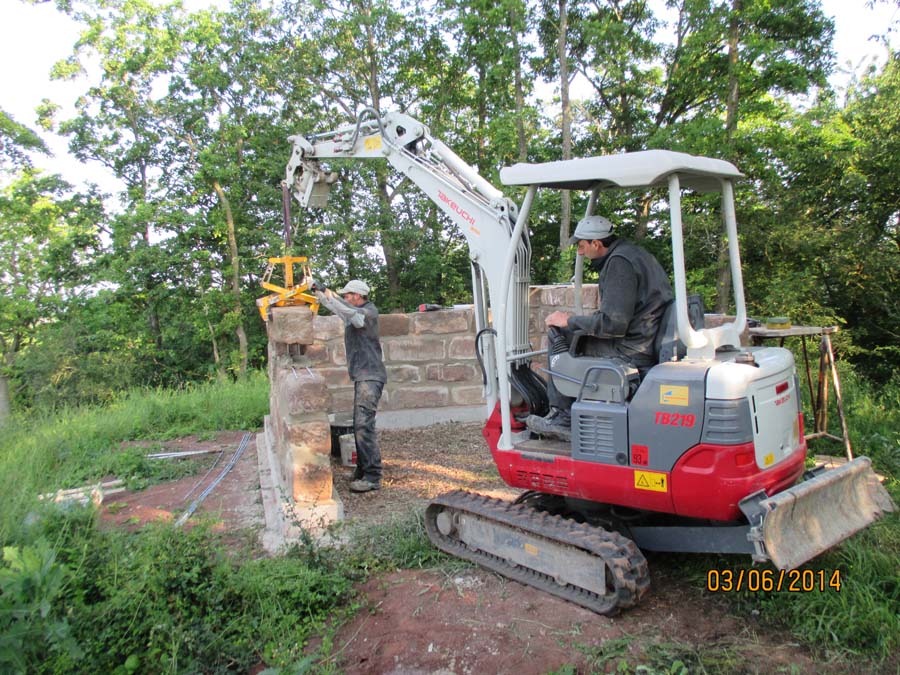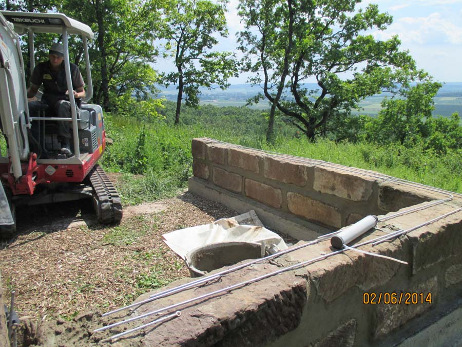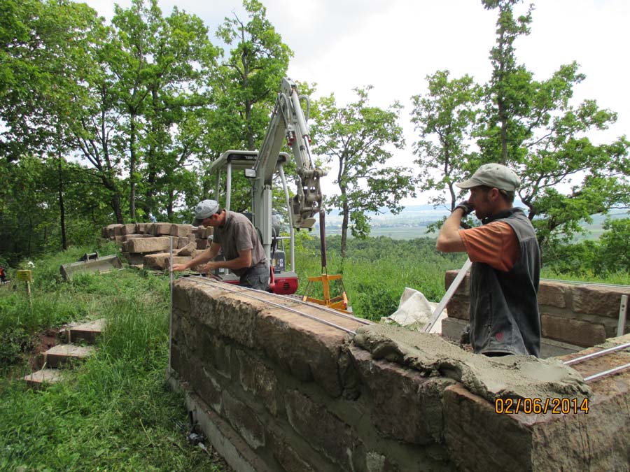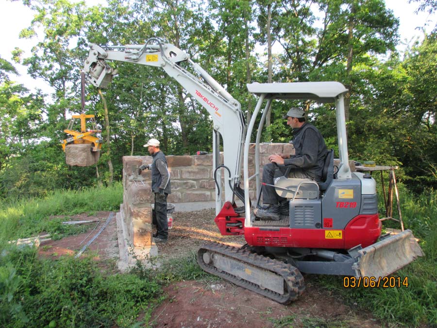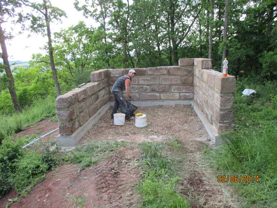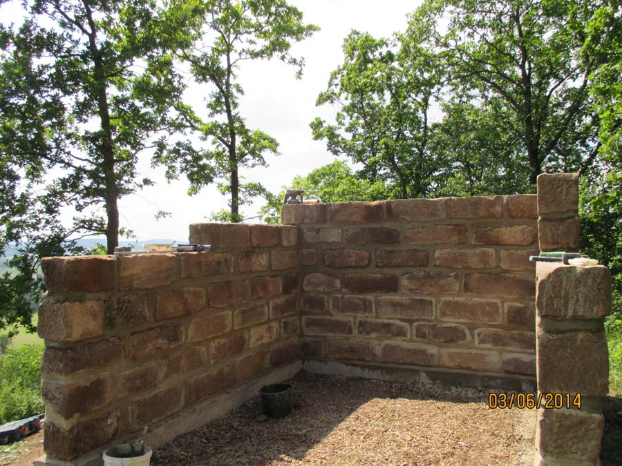 Die Maurerarbeiten am Sandsteingrundstock