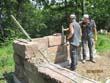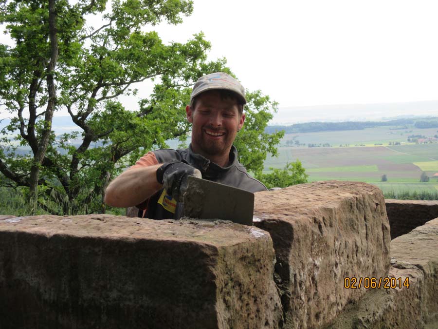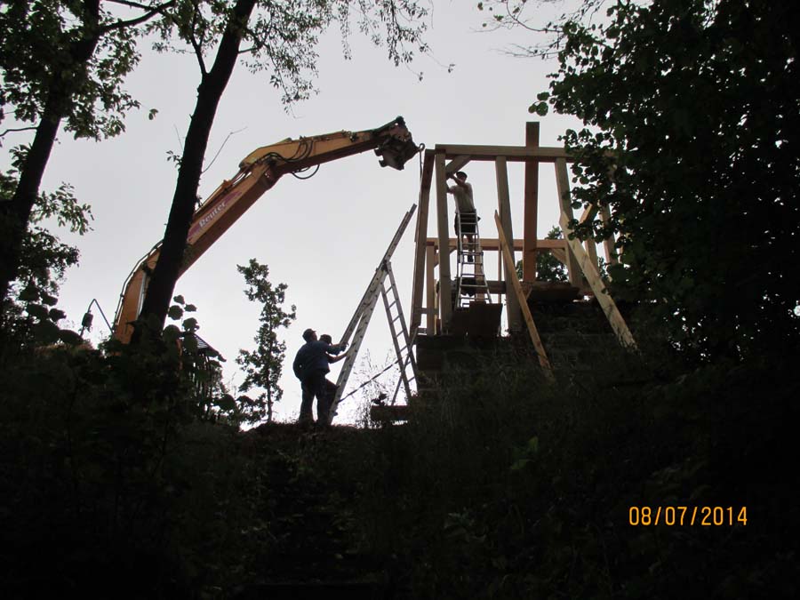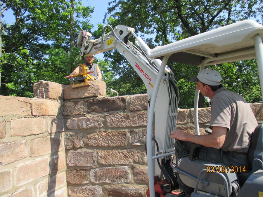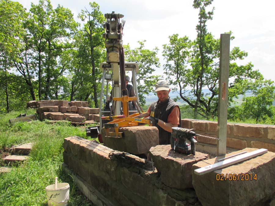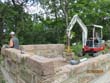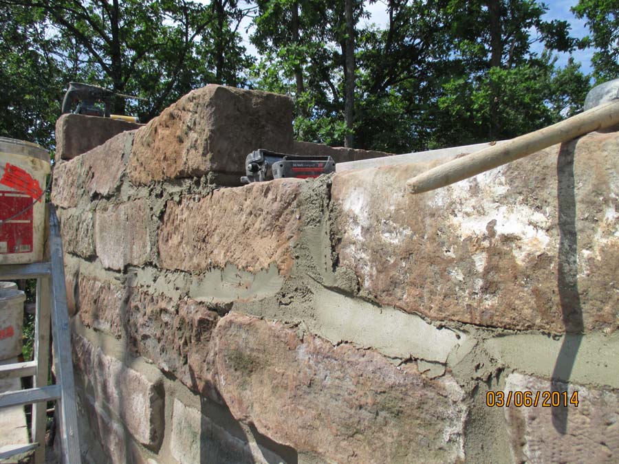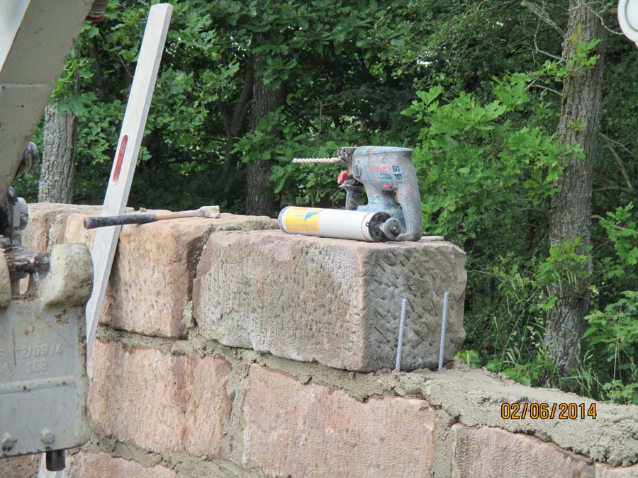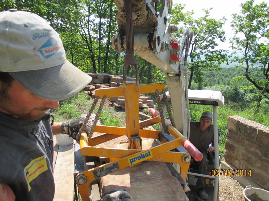Die Maurerarbeiten am Sandsteingrundstock