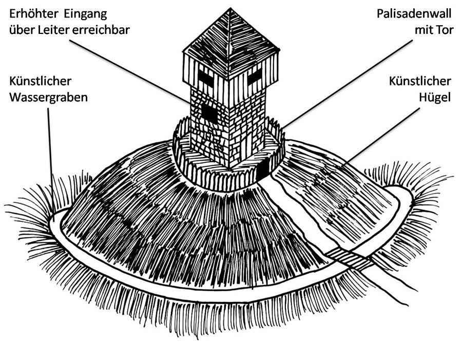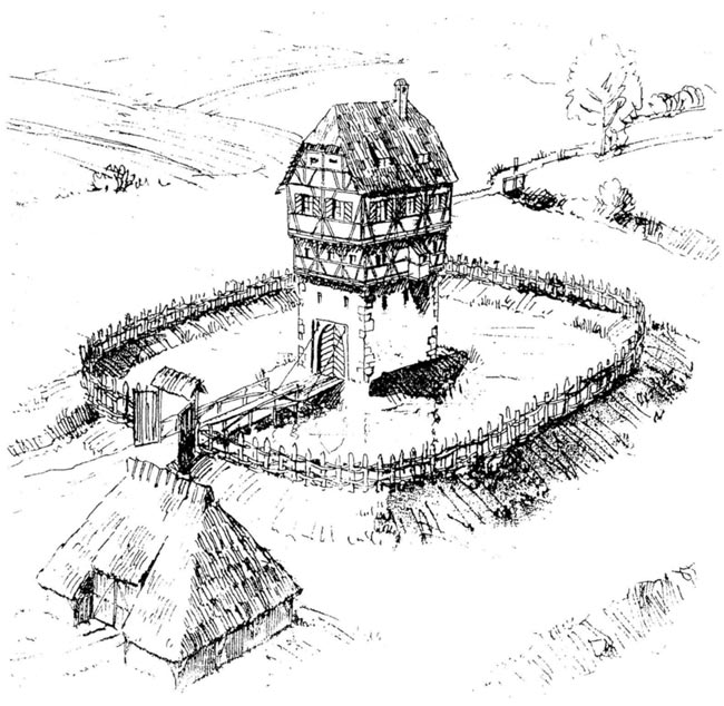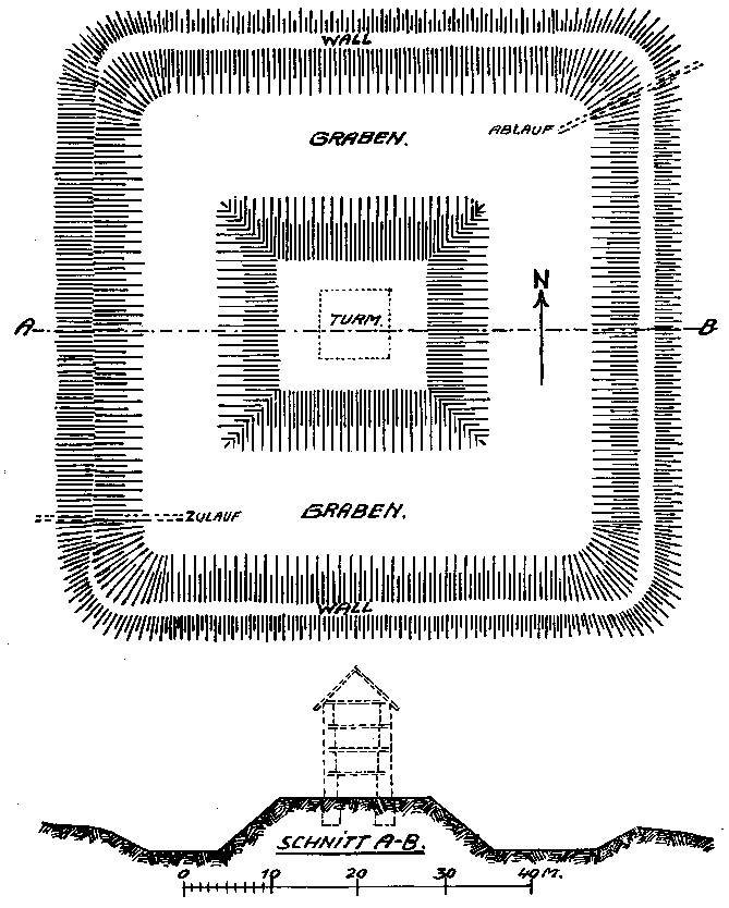 Zeichnung des Viereckigen Turmhügels in Herbolzheim