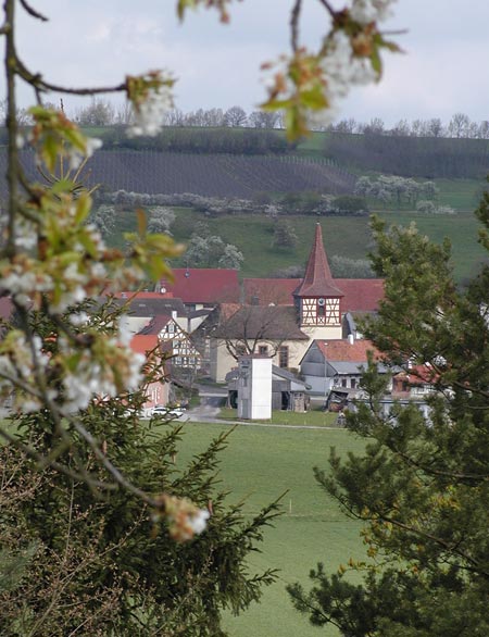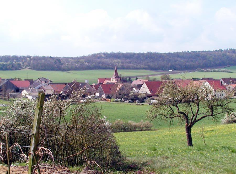 Der Ort, dessen Name von seinem Gründer bzw. Grundherrn Hunbreht (790) kommt, liegt von Hügeln umgeben im Tal des Kaibachs. Für die frühe Gründung zwischen 832 - 841 sprechen auch die Lage am Rand des Altsiedellandes und die Dorfkirche. Alle diese Merkmale fehlen den übrigen - "au" Orten.