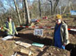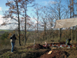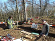 Natürlich konnte dies erst geschehen als der Turmhügel bereits von Bäumen und Gestrüpp befreit worden war dies war aber bereits 2012 geschehen. Archäologen und Helfer aus Rüdisbronn hoben das Fundamend zum Aussichtsturm gemeinsam aus. Die Tiefe betrug je nach Gelände zwischen 40 und 80 cm.