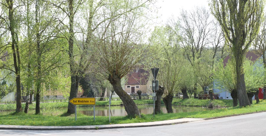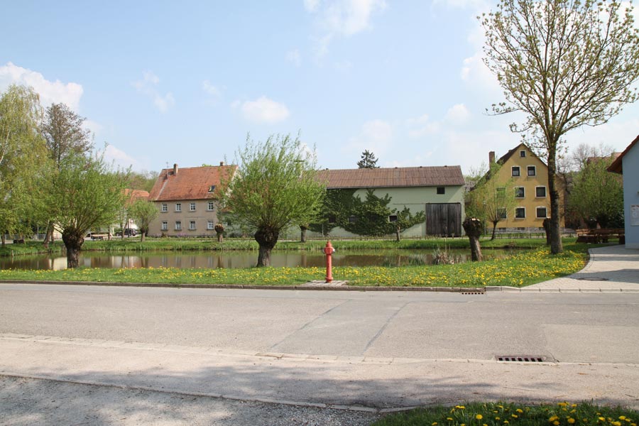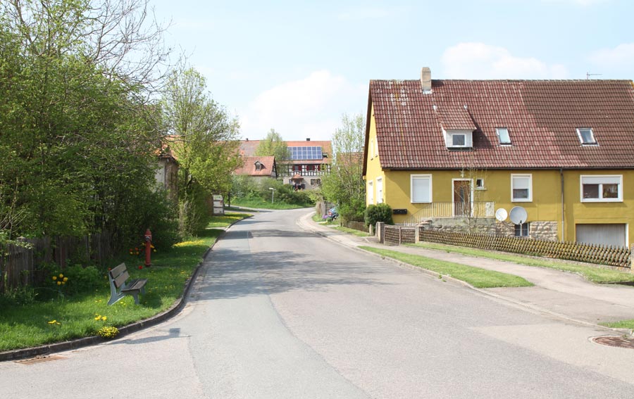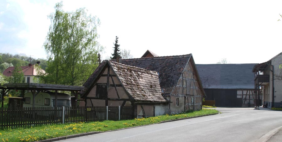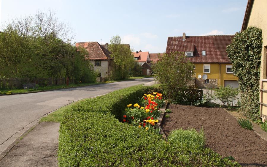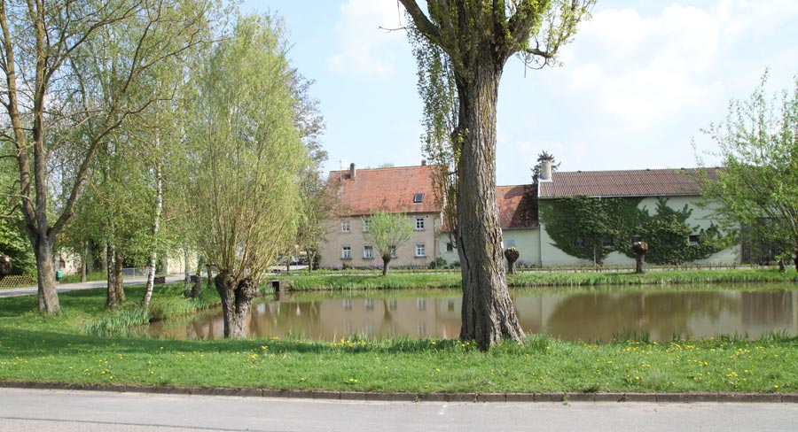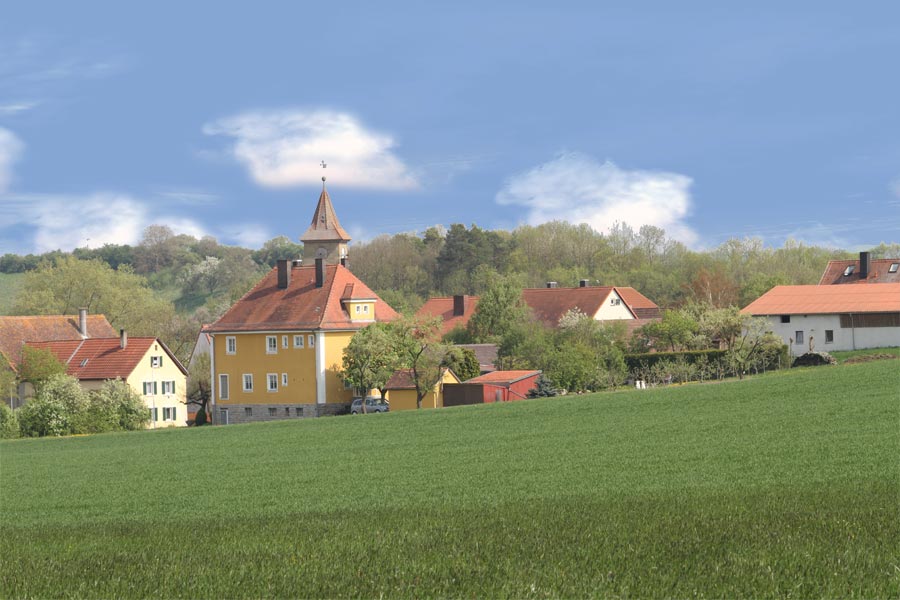 In der Nähe des jetzigen Dorfweihers stand eine Wasserburg. Diese Burg wurde von Windsheim zerstört und 1447 restlos abgebrochen. Das ehemalige Burggasthaus ist heute das Gasthaus "Schwarzer Adler". Letzte Reste des Burgstalles wurden im Winter 1886 –1887 abgetragen. Aus den zum ehemaligen Schloss gehörigen Gütern, wurden die Bauernhöfe Nr. 3, 4, 5 und 35 gebildet.