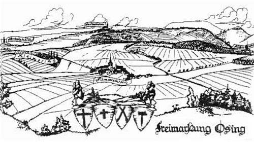 Die Fläche des Osings beträgt fast exakt 10 % der Gesamtfläche der Osinggemeinden. Alle Umstände die zur Rodung des Osings geführt haben weisen einhellig auf die Zeit Karls des Großen hin. Alle Merkmale lassen nur den Schluss zu, daß die Rodung und die Entstehung der Freimarkung zwischen 750 und 800 liegt. Zusätzliche Bestätigung soll die Verwendung der Osingzeichen bei der Osingverlosung sein. Der Name "Osing" deutet auf einen "Hütewald" hin, der "verößigt", gleichsam ausgeraubt war. Osing kommt aus dem mittelhochdeutschen Wort "asanc", dies bedeutet "absengen, Durch die Abholzung und das anschließende Verbrennen von Wurzelwerk und Unterholz gewann man zusätzliches Ackerland und Asche zur Düngung. Der Osing wird 1424 das erste mal genannt in der Brandenburgischen Geleitwegeordnung. Der erste schriftliche Nachweis über den Osing stammt aus dem Jahre 1465, es ist ein Klagebrief der Stadt Windsheim. Die älteste Urkunde zum Osing, der Osingbrief, stammt aus dem Jahre 1587 und befindet sich im Besitz der Osingrechtler. Alle 10 Jahre wird die Fläche des Osings unter den Rechtlern der vier Osinggemeinden verlost, jeweils wenn die Jahreszahl mit "4" endet. Das nächste mal also 2034.