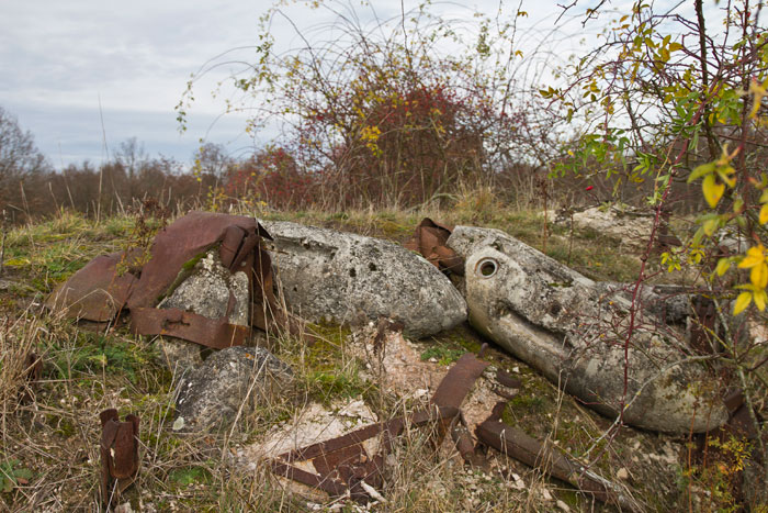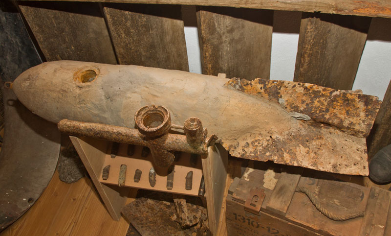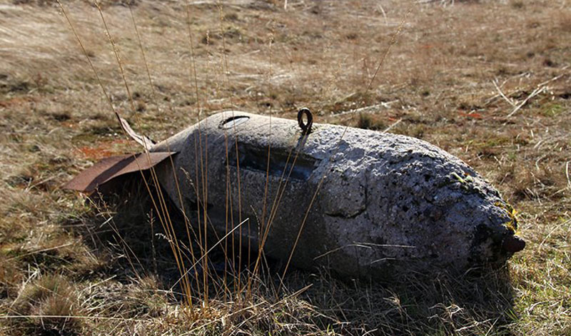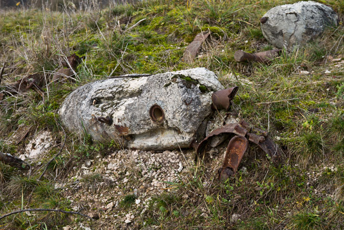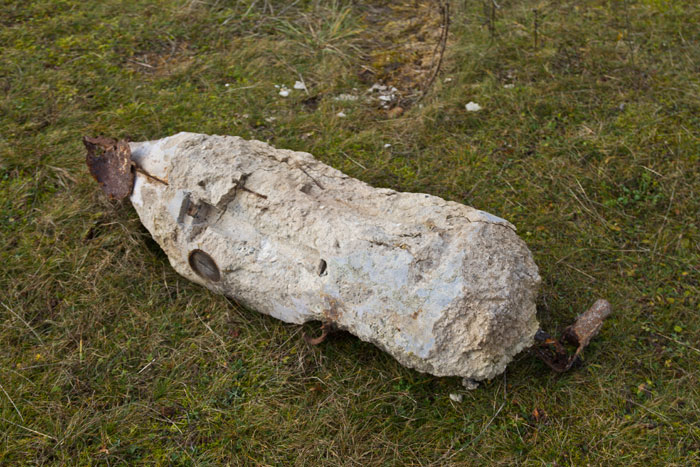 Einschlagkrater sind noch erkennbar und Beton-Übungsbomben sowie Teile von abgestürzten Flugzeugen zu finden.
