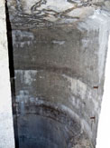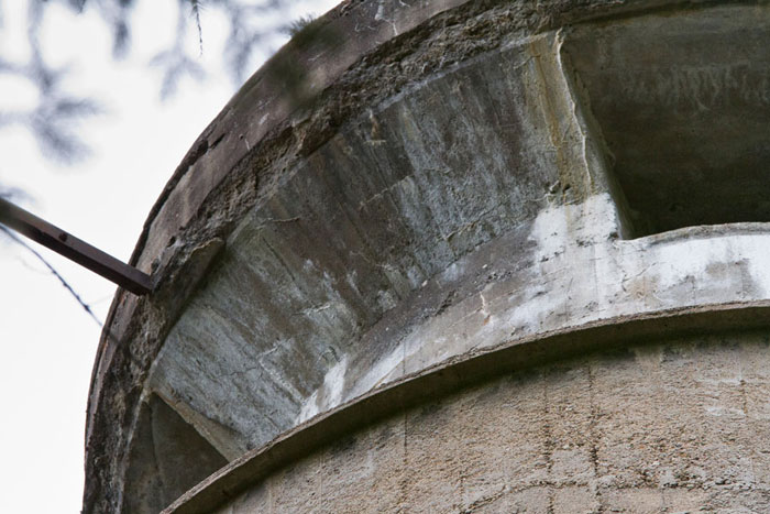 Unter dem obersten Podest befindet sich eine bogenförmige (von West nach Ost) Verstärkung (von Süd nach Nord) mit einer mittleren Stärke von ca. 37 cm.
