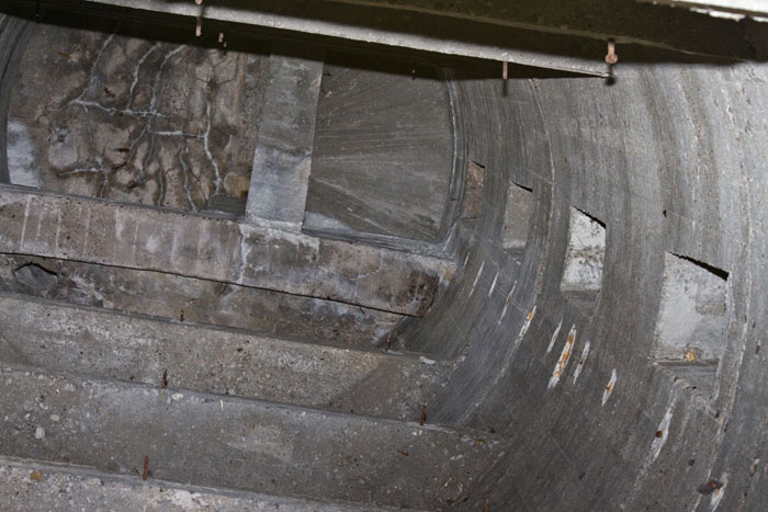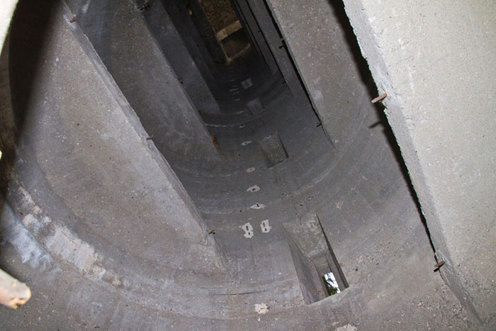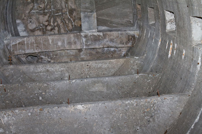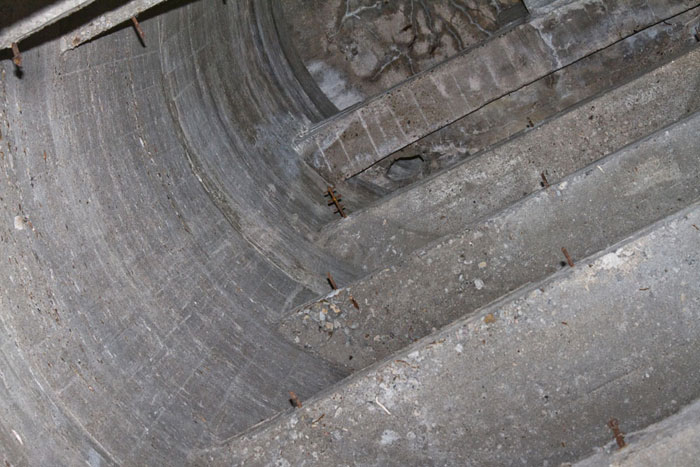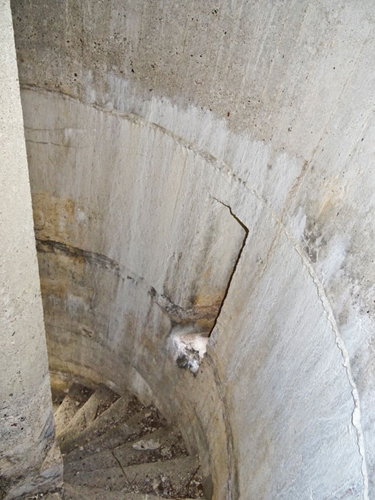 Der größere, untere Teil des Turmes bis zum Umgang hatte ausschließlich die Funktion als Treppenhaus. Die Betonierung ist in vier Abschnitten erfolgt.