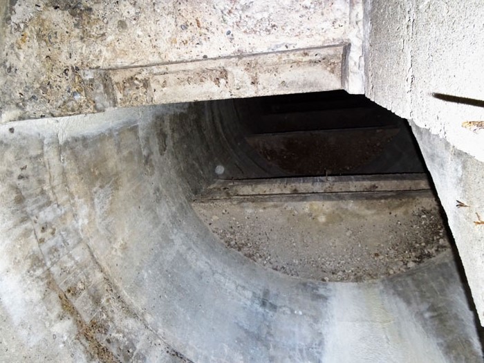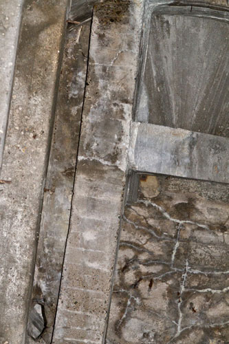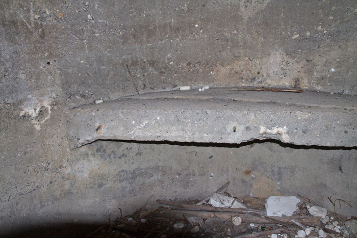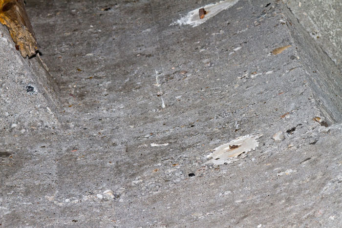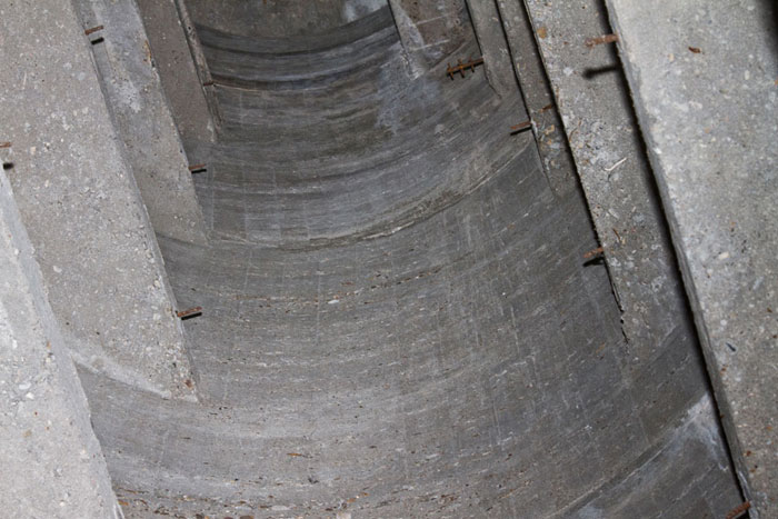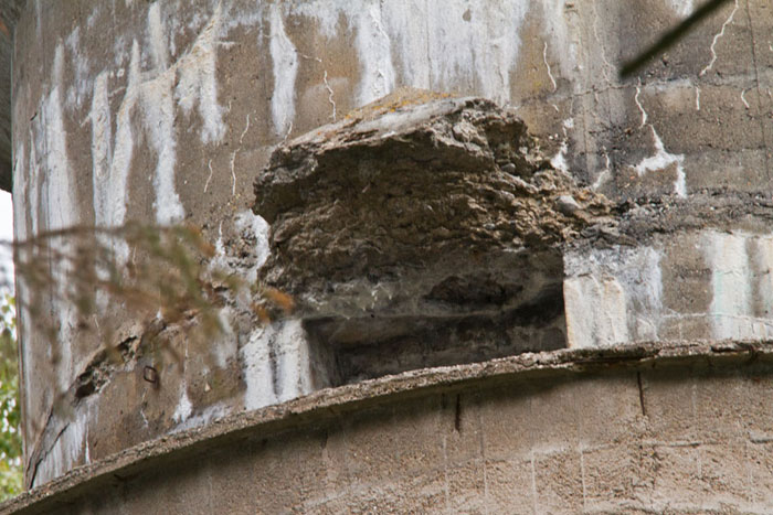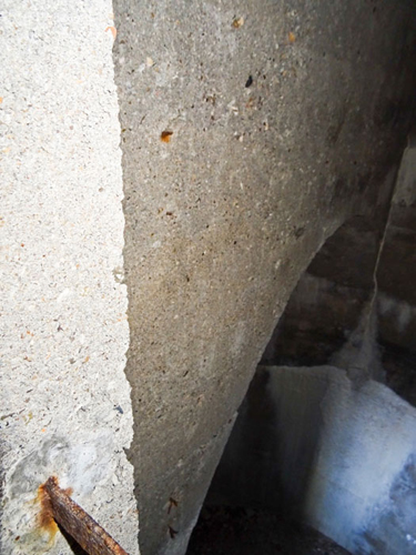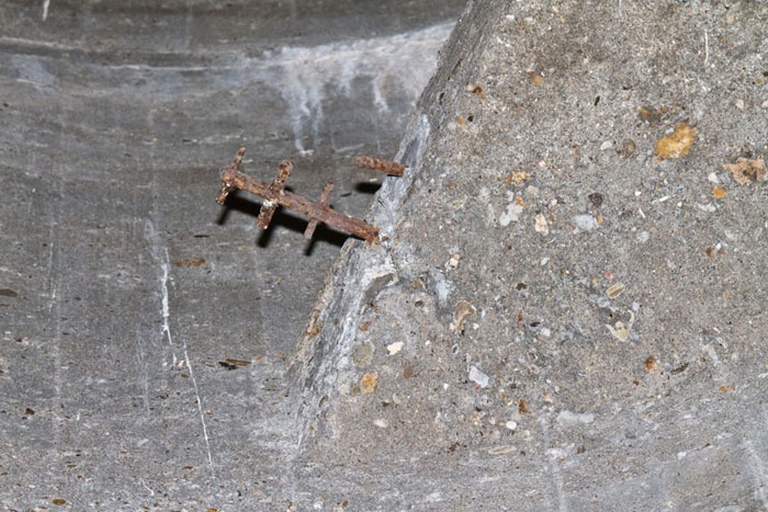Heute ist an einigen Stellen der Boden bis auf die Armierungseisen auf- bzw. abgebrochen.