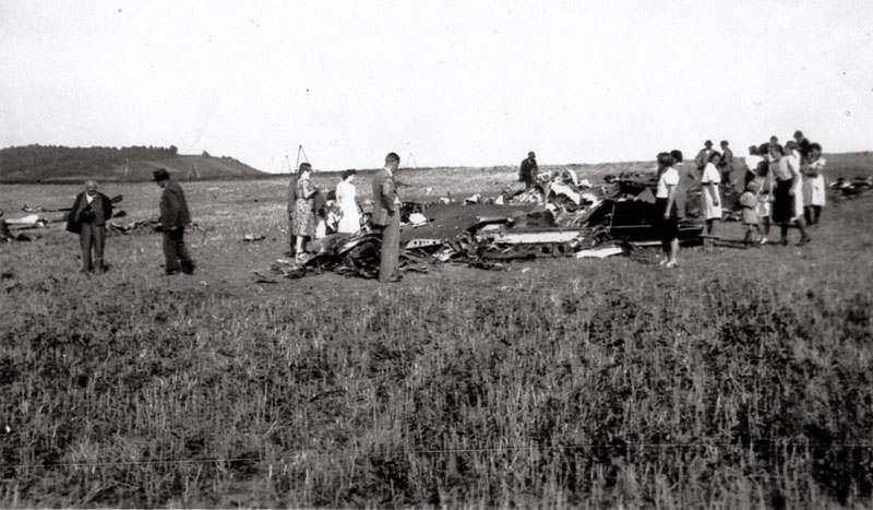Auf einem Bild sind die Trümmer vom Absturz eines englischen Flugzeugs am 24.8.1943 bei Ingolstadt dokumentiert. Laut persönlichen Berichten war ein kanadischer Flieger der RCAF, gefangen genommen worden und kurzzeitig im Schulhaus in Ingolstadt bis zur Abholung in ein Gefangenenlager unter Bewachung untergebracht. Zwei Mitglieder der Besatzung kamen beim Absturz ums Leben und wurden in Ingolstadt begraben. Im Juni 1948 wurden sie umgebettet.