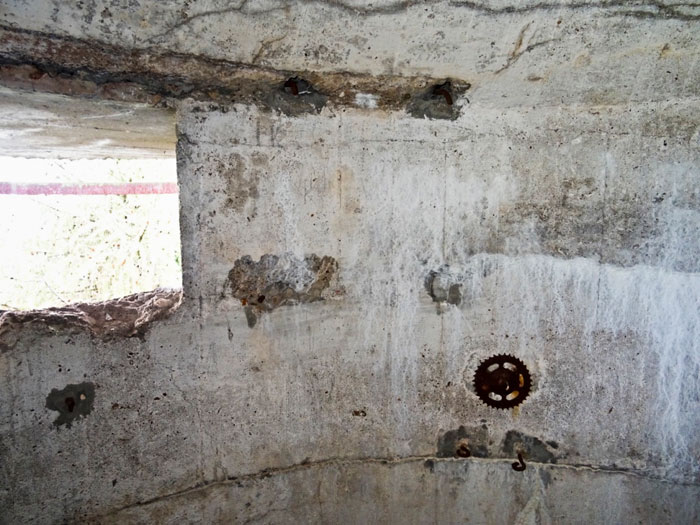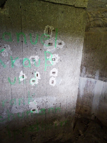 Der Höhepunkt der ganzen Bauarbeiten ist die Zerstörung der unter Denkmalschutz stehenden Trefferanzeige. Es wurden einfach drei Betonklötze herausgerissen und dies bestimmt nicht ohne Absicht. Dies ist für mich Denkmalfrevel und gehört bestraft. Zusätzlich wurde einer der zwei Seilführungsblöcke herausgerissen und dies mit Absicht. Diese Blöcke dienten der Seilführung zum Panzerturm für die Trefferanzeige. Der herausgerissene Block wurde bisher nicht wieder eingesetzt weil die ganze Sache unter den Tisch gekehrt wurde. Nach dem Motto: "Eine Krähe hackt der anderen kein Auge aus".