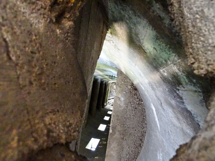 An der Nordseite des Panzerturms sind sieben schmale, durch Schalung ausgesparte schlitzartige Öffnungen für Lichteinfall (12 cm breit, 90 cm hoch), die sich jeweils nach innen auf 20 und 30 cm trapezförmig erweitern. Die erste Öffnung ist an der Außenwand vom Sockel in einer Höhe von