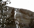 Das anschließende Gelände war unbefahrbar, weshalb für eine Feldbahn Schienen mit Metall-Schwellen verlegt werden mußten, was damals auch beim Autobahnbau üblich war. Die vorgefertigten Teile hatten eine Länge von circa 10 m und wurden jeweils aneinander geschraubt. Nach Fertigstellung fuhren darauf Dieselloks längere Züge mit Rollwagen quer über den "Langen Grund" mit seinen Gräben, bis zur starken Steigung unterhalb des Bauplatzes. Neben Loren mit kippbaren Mulden für Schüttgut gab es auch solche mit flachen Ladebrücken z.B. für Baustahl, Schalungsteile, Baugeräte usw. (auch Wasserbehälter?).