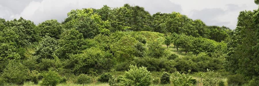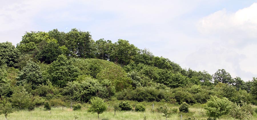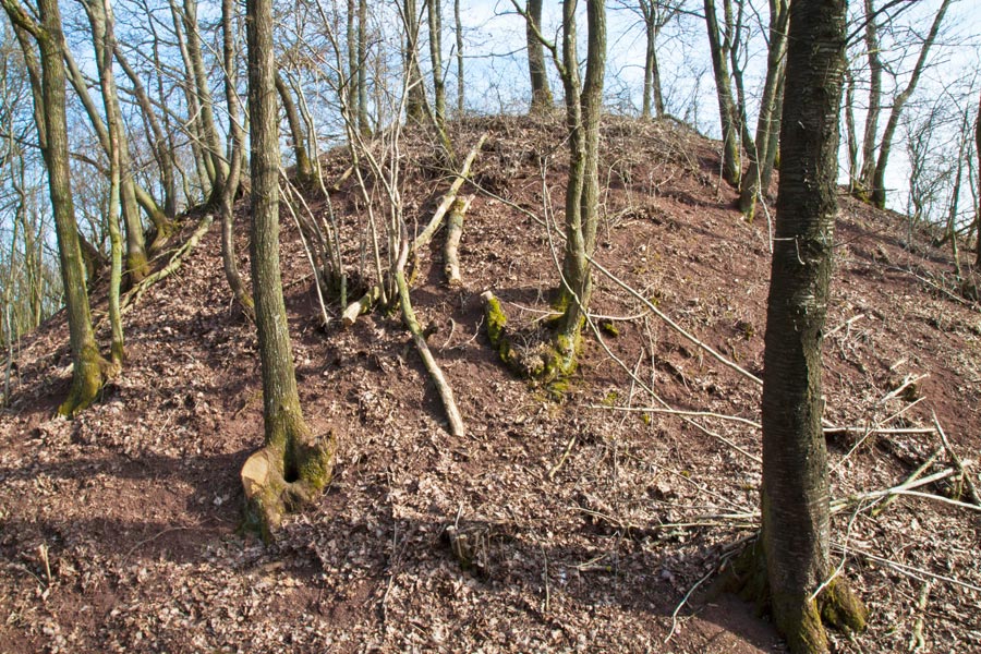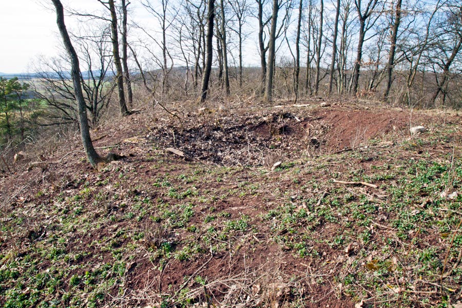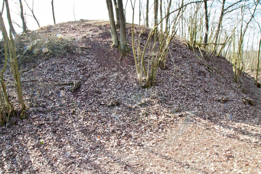 leichte umlaufende Terrassierung liefert jedoch den Hinweis, dass hier ehemals ein