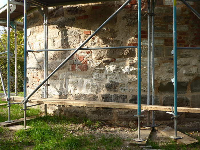 Der große Riss im oberen, verdeckten, Fachwerkteil des Turmes ist Geschichte! (siehe Bilder) Das Fachwerk wurde leider nicht freigelegt, da die Freilegung, durch abklopfen des Putzes, mehr Schaden als Nutzen gebracht hätte. Das untere, bisher sehr schlechte Mauerwerk, wurde von außen sehr liebevoll Renoviert. Die geplante Innenrenovierung wird noch einige Zeit in Anspruch nehmen. Die Renovierung des ehemaligen Wächterzimmers, in der oberen Hälfte des Turmes, wurde ebenfalls schon begonnen..