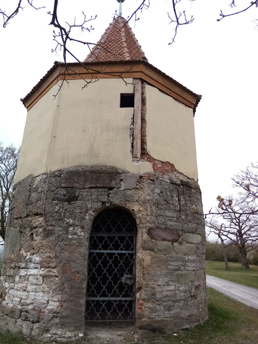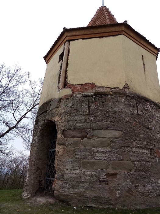 Dieser Wartturm wurde ursprünglich zu Schutz der Weinberge und der außerhalb der Stadtmauern arbeitenden Bevölkerung errichtet. Man darf nicht vergessen, zur damaliger Zeit war Wein ein wichtiges Wirtschaftsgut, die Stadt erlies damals für die Herbst-Weinlese sogar eine eigene Ordnung. Ebenfalls fanden in dieser Zeit die Hussitenkriege (1419-1436) statt. Der Anfang dieser Kriege begann im Königreich Böhmen