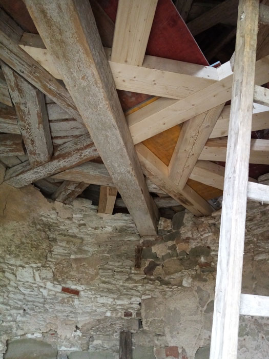 Das dendrochronologische Gutachten sagt aus, dass das für den Dachstuhl verwendete Eichenholz 1670 und das verwendete Fichtenholz 1673 geschlagen wurde. Dies wiederum passt zur Historie, die sagt, dass der Dachstuhl, bzw. der Turm 1674 wieder aufgebaut wurde.