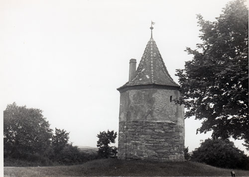 1634 Brand: Sonntags den 7. September marschierten die Kaiserlichen Soldaten nach Illesheim und brannten in der selbigen Nacht den Turm auf dem Weinberg ab. Das Mauerwerk des Turmes bestand aber weiter und diente den späteren Bauten als Fundament. Vermutlich ist das Fachwerk und das Dach abgebrochen worden um das Holz für die Wachfeuer und zum heizen zu verwenden.
